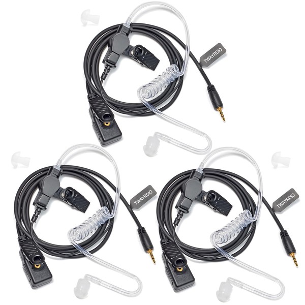 TWAYRDIO Two Way Radio Earpiece Headset for Cobra Walkie Talkie ACXT145 ACXT1035R ACXT545 ACXT390 ACXT345 CXT195, 1 Pin Covert Acoustic Tube Earpiece Ear Piece with Mic, Pack of 3