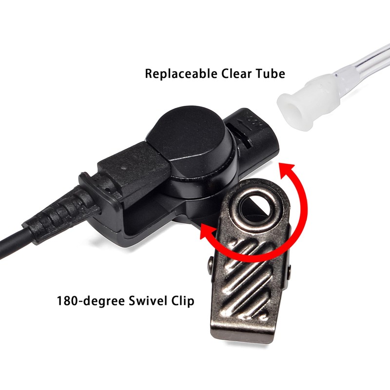 - [Wide Application] Good to use in security, hotel, restaurant, warehouses, supermarket, events, outdoor exercise. The cord length provides flexibility for movement. An 360-degree swivel clip on the PTT can easily attach to your clothing.