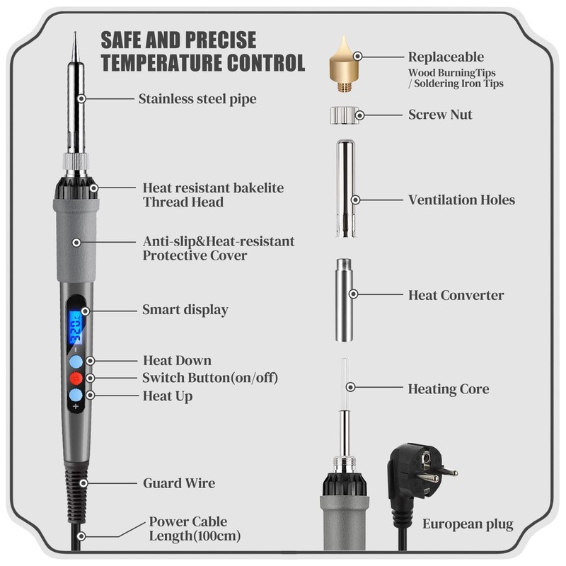 TWBEST 80 W Pyrography Soldering Iron Set, 108 Pieces Pyrography Burner Set, Soldering Iron Kit, Wood Burner Set, LED Display, Soldering Iron Wood, Pyrography Soldering Iron Set with Letters and