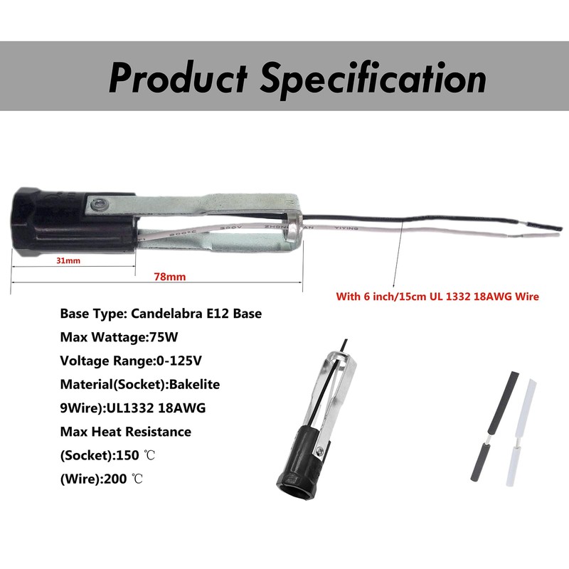 • Versatile Socket:This candelabra base lamp holder suitable for E12 candelabra base bulbs, with 6-inch wire lead for your project easy installation.