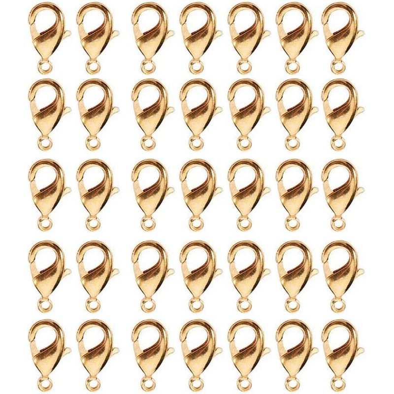 Tweal Lobster Clasp, Pack of 100 Silver-Plated Lobster Clasps, Jewellery Clasps for Necklaces, Bracelets, Pendants, Anklets, Jewellery Making (Gold 12 mm)