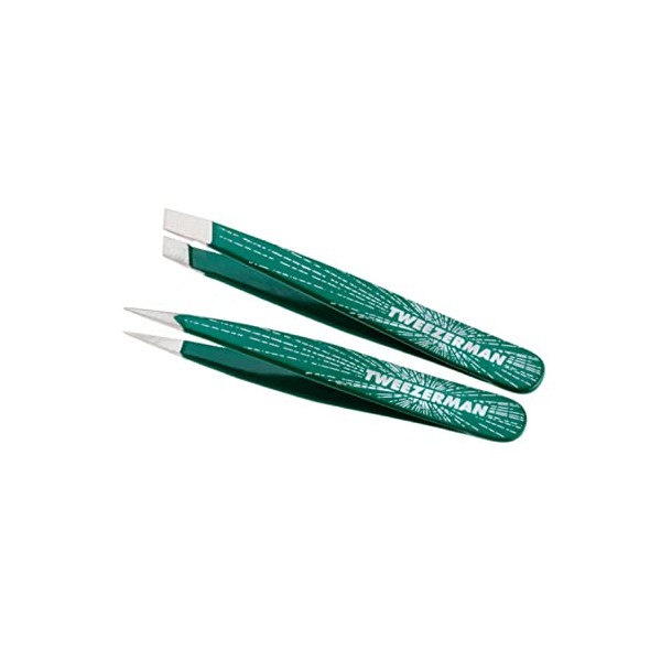 Tweezerman Emerald Shimmer Micro Mini Slant & Point Tweezer Set