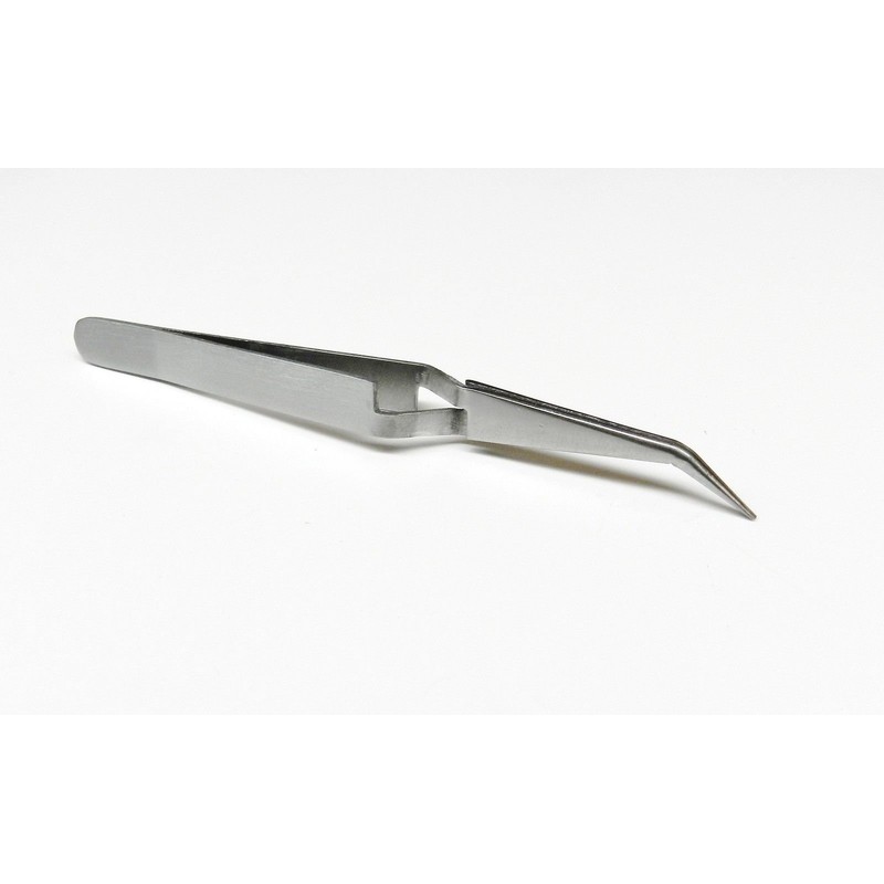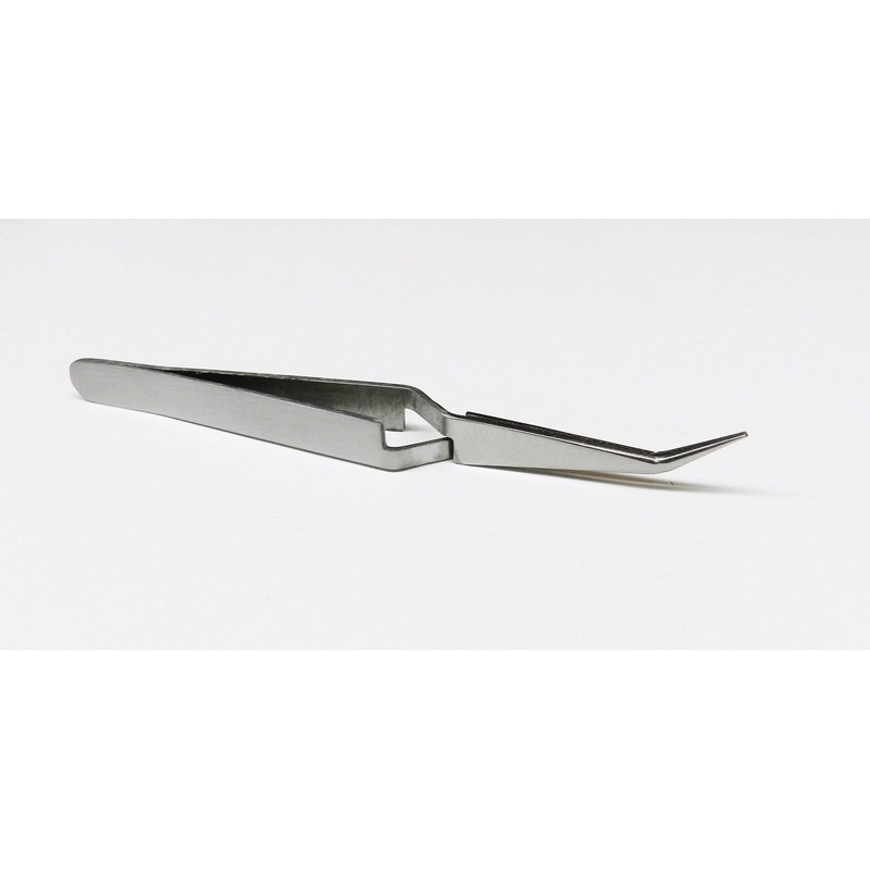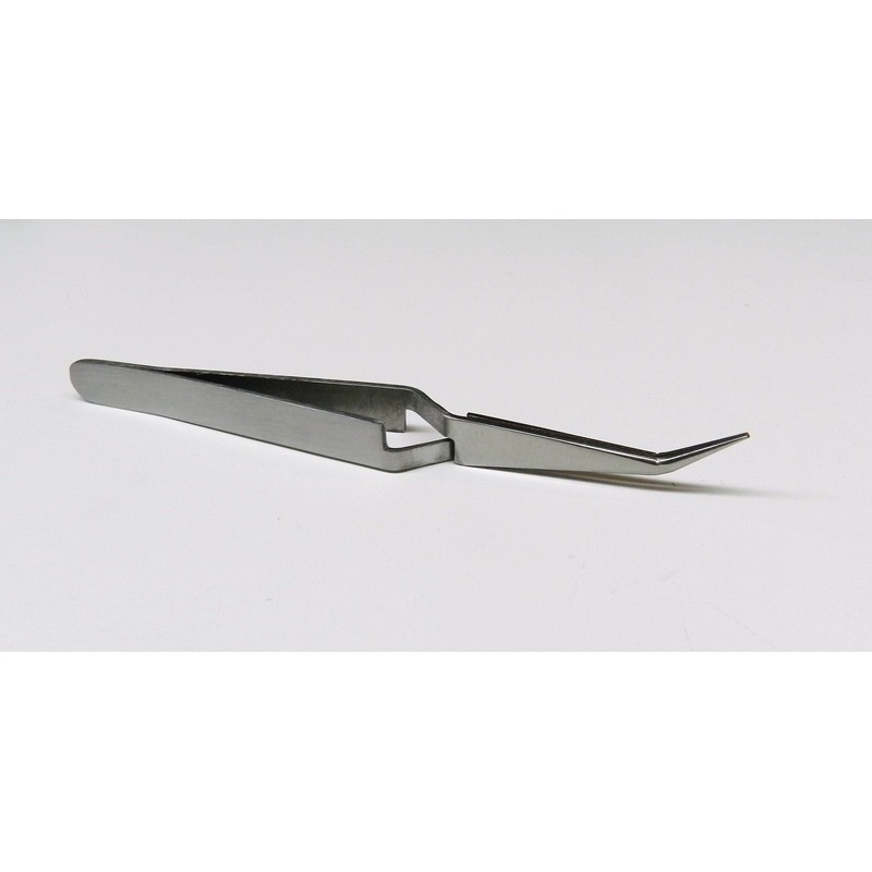 Tweezers Bent Tip Cross Locking 45 Degree Curve Cross Lock 4-1/2" Stainless By JTS