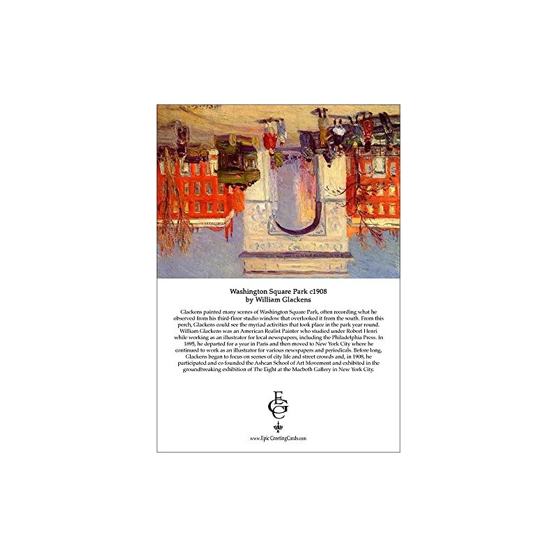 Twelve Note Cards of William Glackens Ashcan School Impressionist Oil Painting Titled Washington Square Park in a Boxed Set