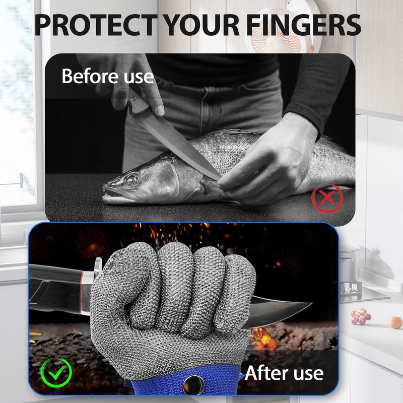 - Sustainable and environmentally friendly material choice: made of stainless steel, our chain gloves are not only extremely durable, but also environmentally friendly. They are 100% recyclable, making them a sustainable choice for environmentally conscious consumers