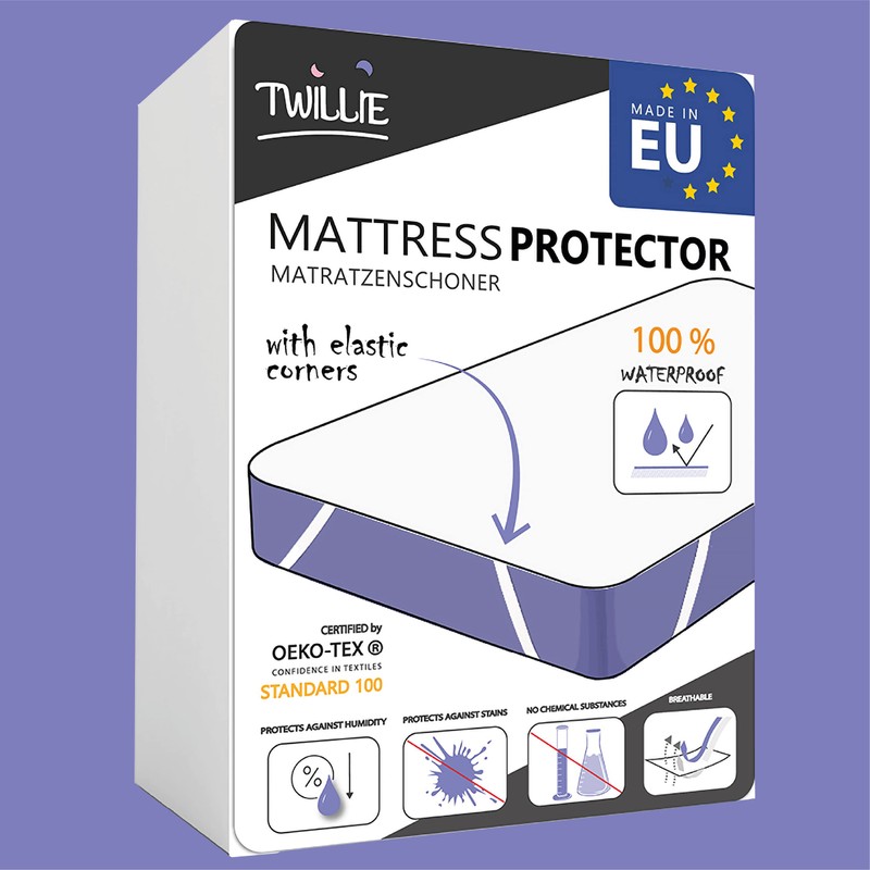• Your mattress stays clean, healthy and hygienic – the Twillie mattress protector 160 x 200 cm is 100% waterproof and thus ensures optimal protection for your mattress from stains, sweat, urine and all liquids. Thanks to our mattress protector, your mattress will stay like new for a lifetime