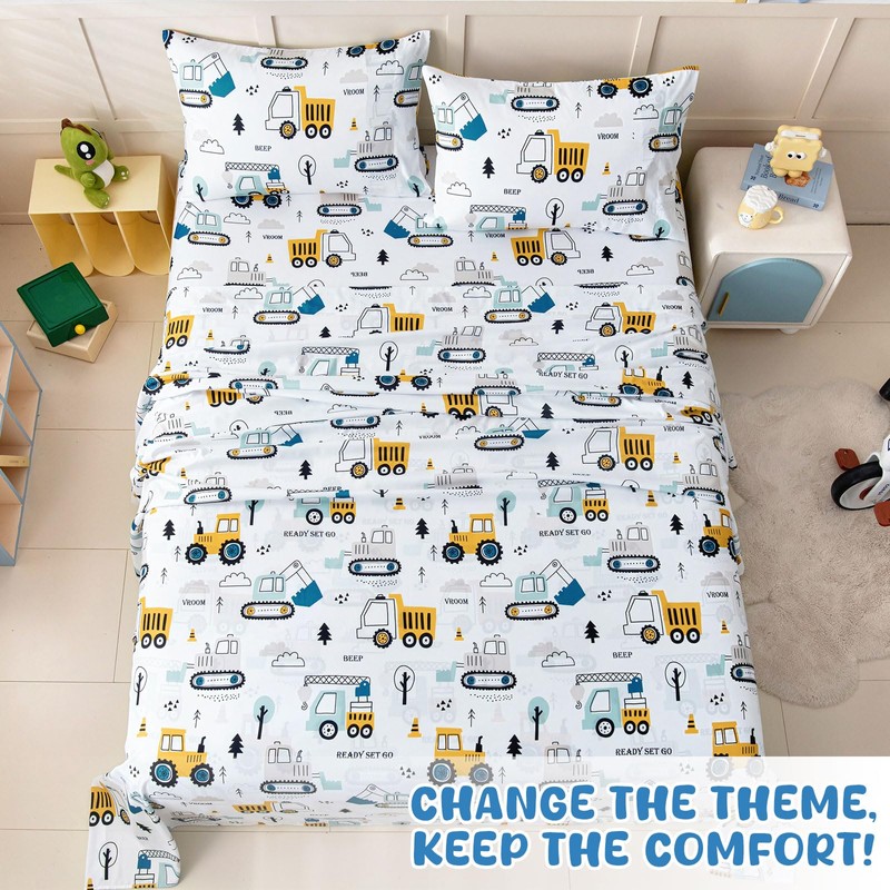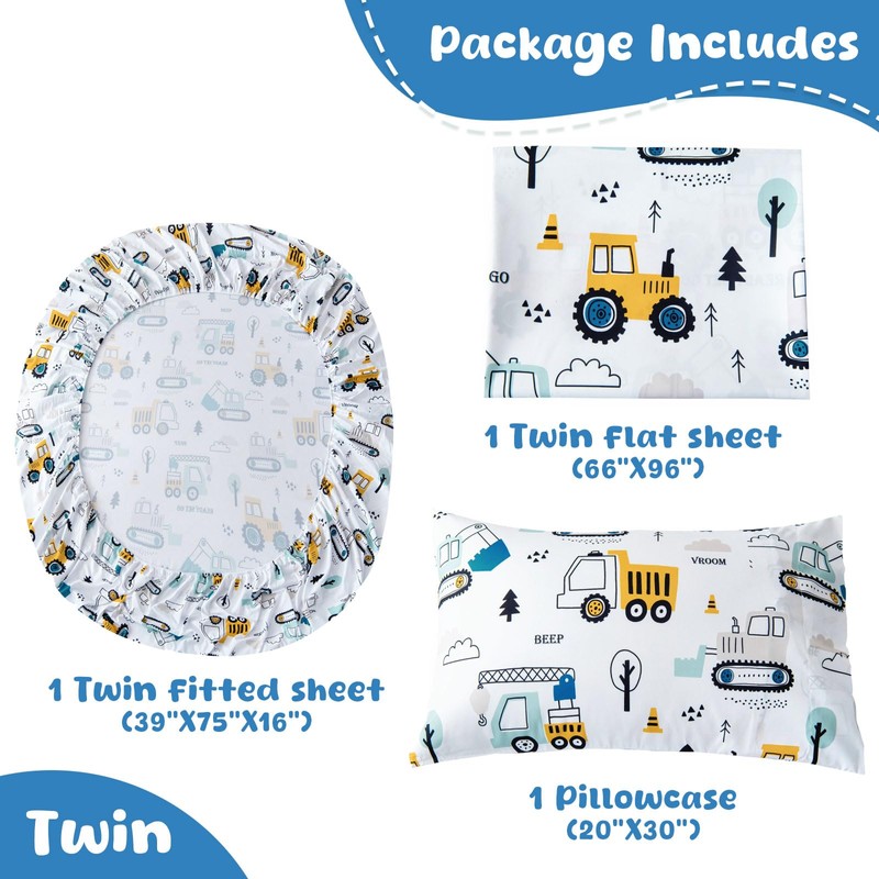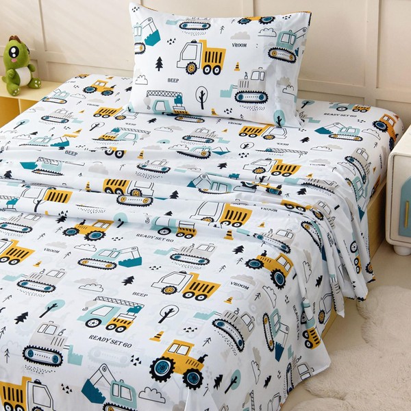 Twin Bed Sheets Set for Boys, 3-Piece Bed Sheet Set for Toddler, Soft Brushed Microfiber Bedding, Deep Pocket, Wrinkle & Fade Resistant, Excavator