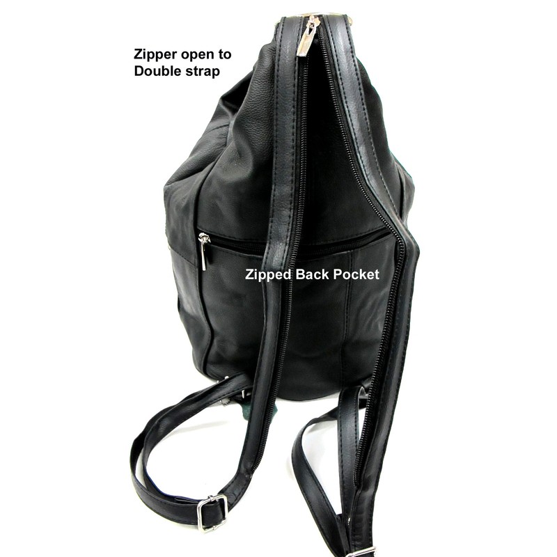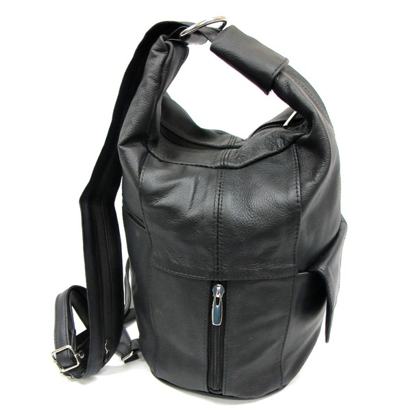 Twin Creek Womens Large Designer Tear Drop Genuine Leather Convertible Backpack Purse Sling Shoulder Bag (Black)
