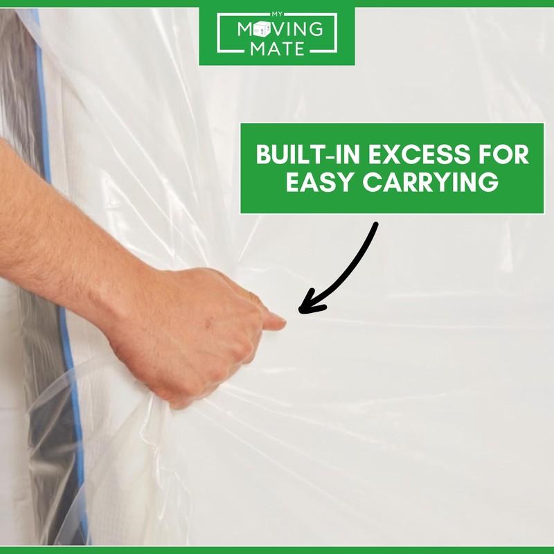 - OVERSIZE EASY GRIP AND SEAL DESIGN - The mattress bag’s oversize design with excess material on all sides means your My Moving Mate plastic mattress cover is easy to grip with a twin mattress inside - essential for the easy transport of your mattress up stairs and through tight spaces. The cover's extra wide opening means your mattress is also easy to bag, with an overlapping flap to seal with duct or packing tape for ultimate protection.