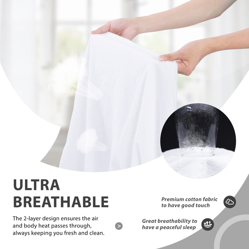 • BREATHABLE FABRIC: Soft cotton terry surface allows the air to pass through easily. So the mattress cover has premium air circulation ability. Good breathability helps you keep a comfortable temperature during the night.