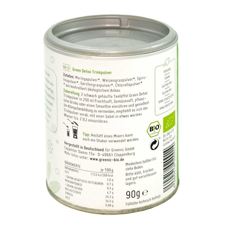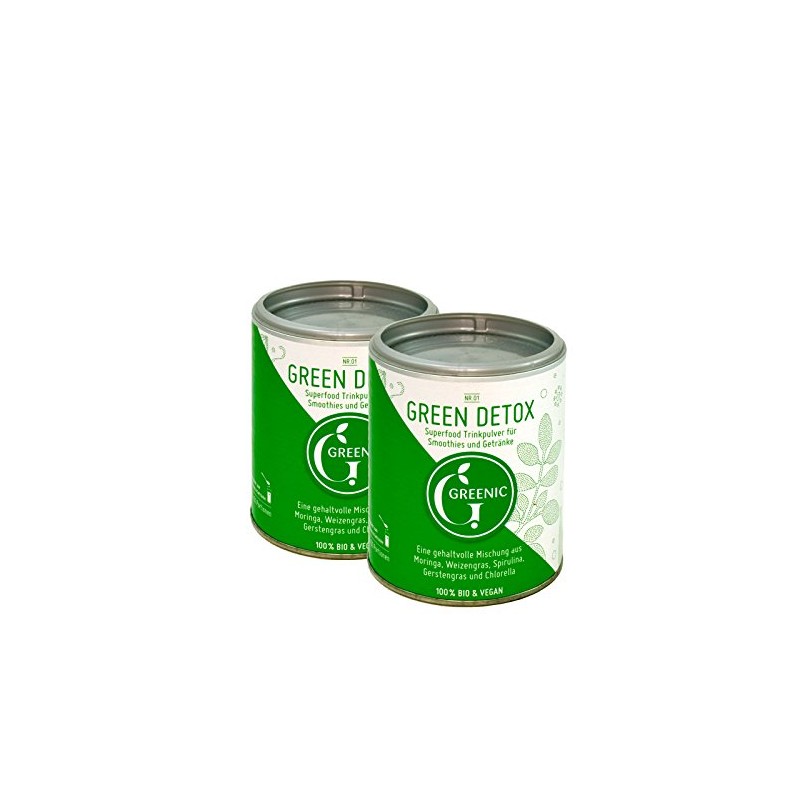 Twin pack in the box: Superfood Green Detox Drinking Powder Mix 2 x 90g by Greenic.
