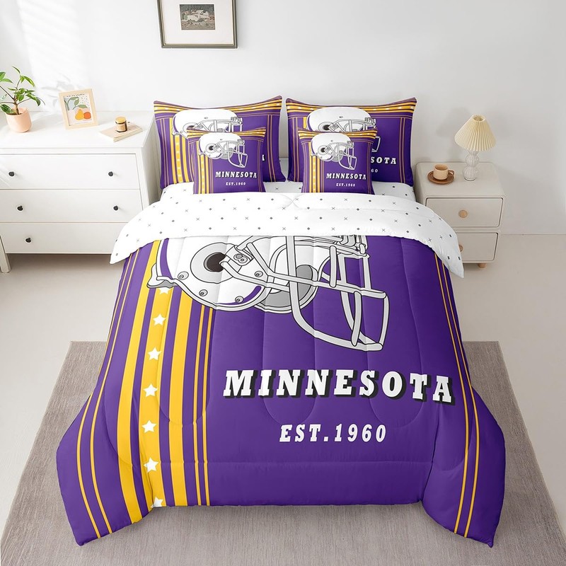 Twin Size 7-Piece Football Gifts Comforter Sets for Football Lovers American Football Comforter Set with Sheets,Minnesota(1 Comforter,1 Flat Sheet,1 Fitted Sheet,2 Pillowcases,2 Throw Pillow Covers)