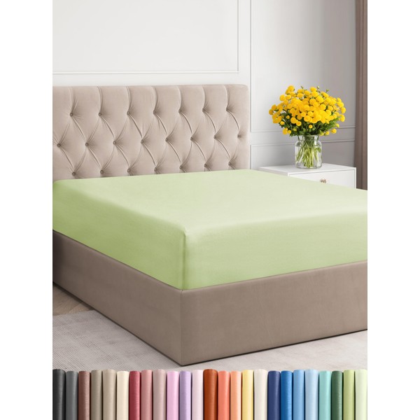Twin Size Fitted Bed Sheet - Hotel Luxury Single Fitted Sheet Only - Fits Mattress Up To 16 - Extra Soft, Wrinkle Free, And Breathable - Bottom Fitted Sheet - Light Sage Green Single Fitted Sheet Only