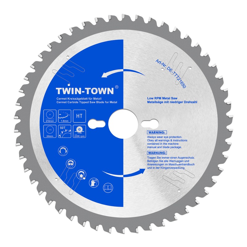 TWIN-TOWN Saw Blade 216 x 30 mm Z50 for Steel and Iron Metal, Circular Saw Blade 216 x 30 mm Ideal for Square Tubes, Angle Irons, Mild Steel Sheet, Pipes and Other Ferrous Metals