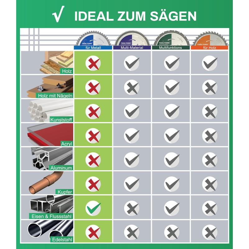 - Applicable materials and saws: square tube, angle iron, mild steel sheet, pipes and other ferrous metals for sawing with metal circular saw.
