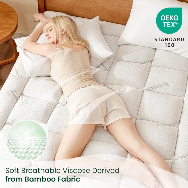Twin XL Mattress Topper, Rayon Derived from Bamboo, 900 GSM Mattress Topper Pad