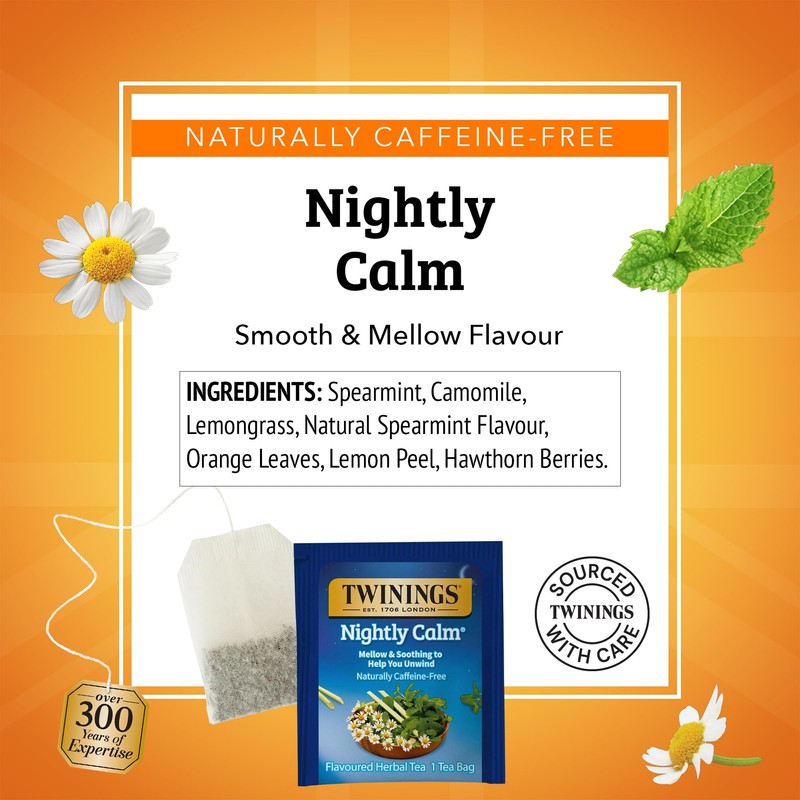 Twinings Nightly Calm Herbal Tea Individually Wrapped Bags, 20 Count (Pack of 6), Spearmint & Lemongrass, Naturally Caffeine-Free, Enjoy Hot or Iced, 120 Teabags
