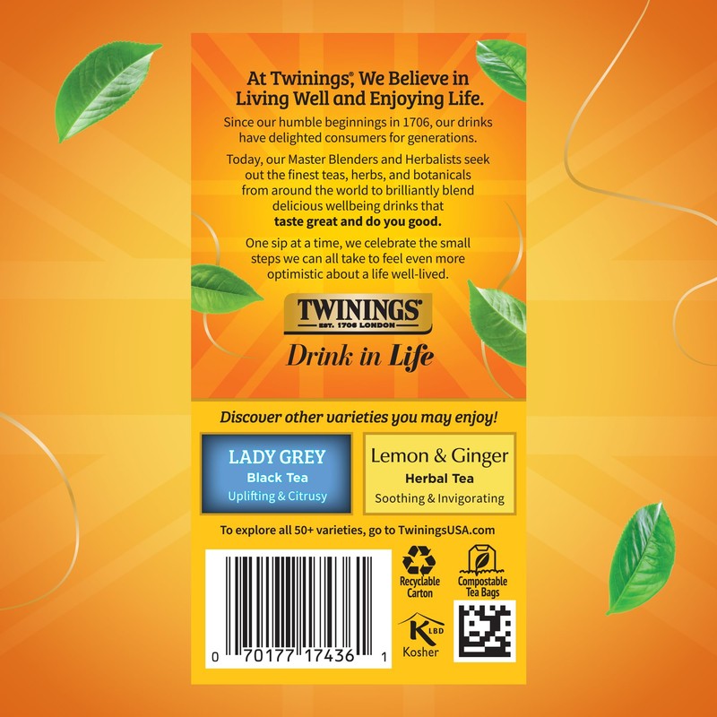 - DRINK IN LIFE: With a signature blend of tradition and innovation, Twinings encourages tea lovers to "Drink In Life" by taking small steps towards feeling good and living well, one sip at a time