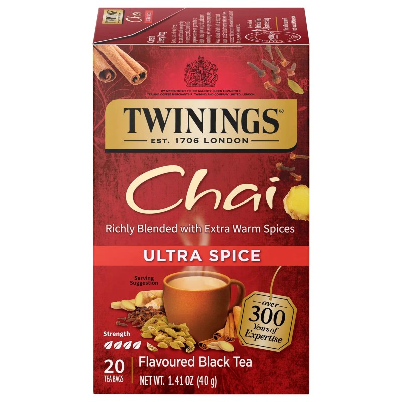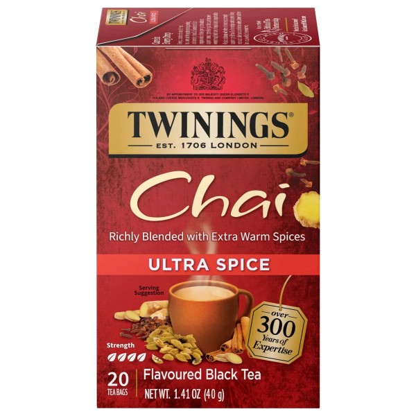 - Twinings Ultra Spice Chai Individually Wrapped Black Tea Bags, 20 Count Pack of 6, Sweet, Savoury Spices, Caffeinated