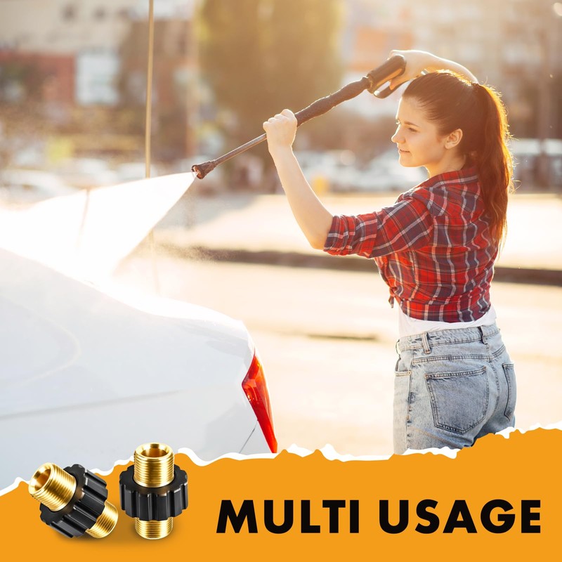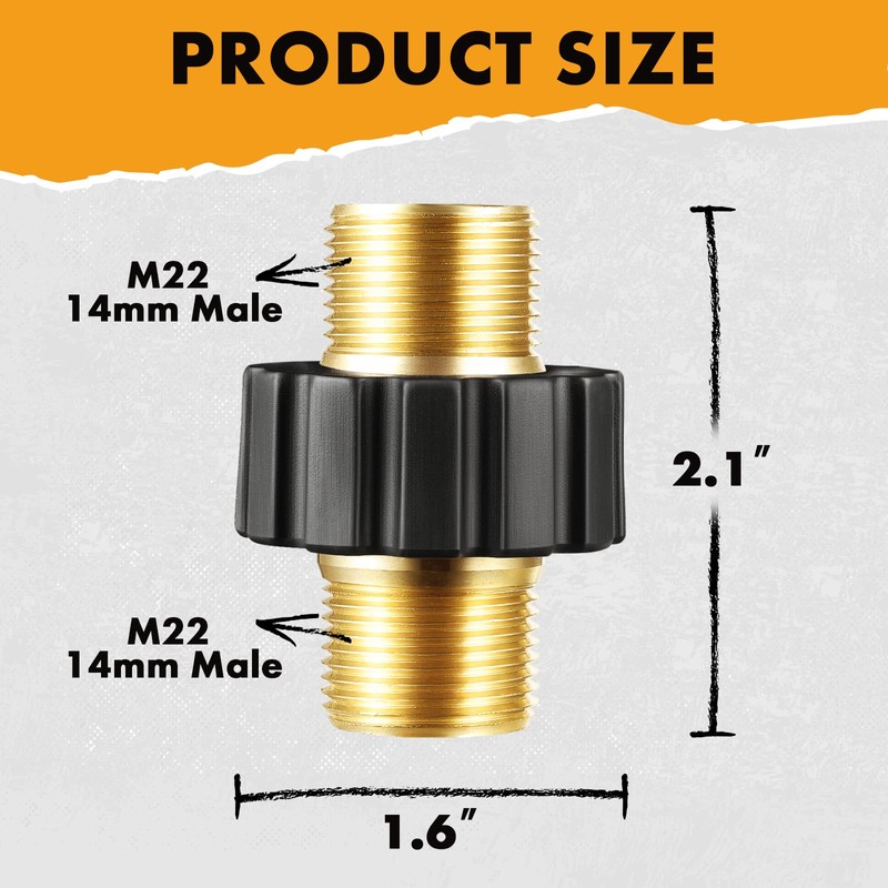 - M22 14 Working Size: Both pressure washer fittings are compatible with M22 metric male thread fittings and feature an M22 14mm female connector.