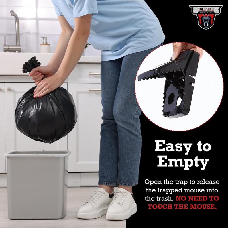 • Enhanced Safety Features: Designed with safety in mind, TwinTech traps prevent accidental triggering, making them perfect for homes with children and pets. Unlike traps that use harmful poisons or glue, these provide a secure way to manage both mice and rat infestations.
