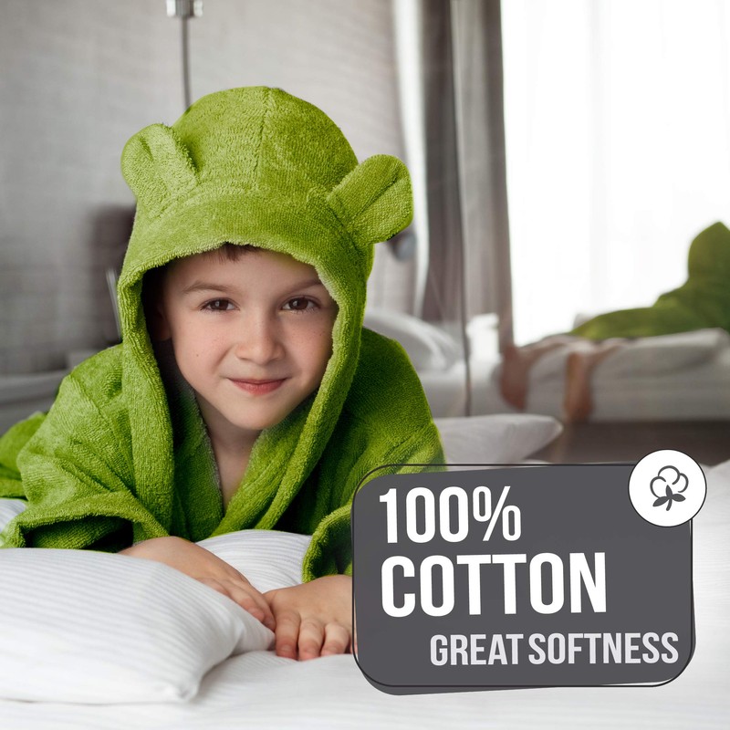 - WRAPPING, PRACTICAL AND FUN BATHROBE - Made from 100% cotton and absorbent terry cloth, the Twinzen terry baby bathrobe is lightweight (350gsm), featuring long sleeves, two pockets and a belt with loops. The original design: the hood and its small ears will make your children a real eye-catcher.