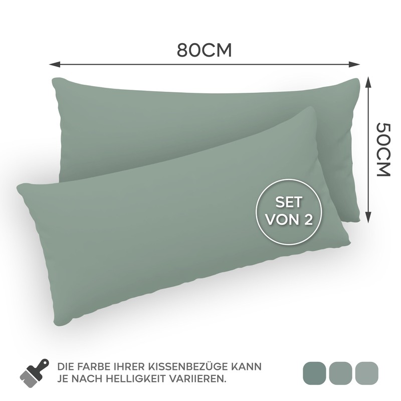 Twinzen® Cushion Covers, 100% Jersey Cotton, 150 GSM, Cushion Cover with Zip, OEKO-TEX Certified, 50 x 80 cm, Set of 2, Green