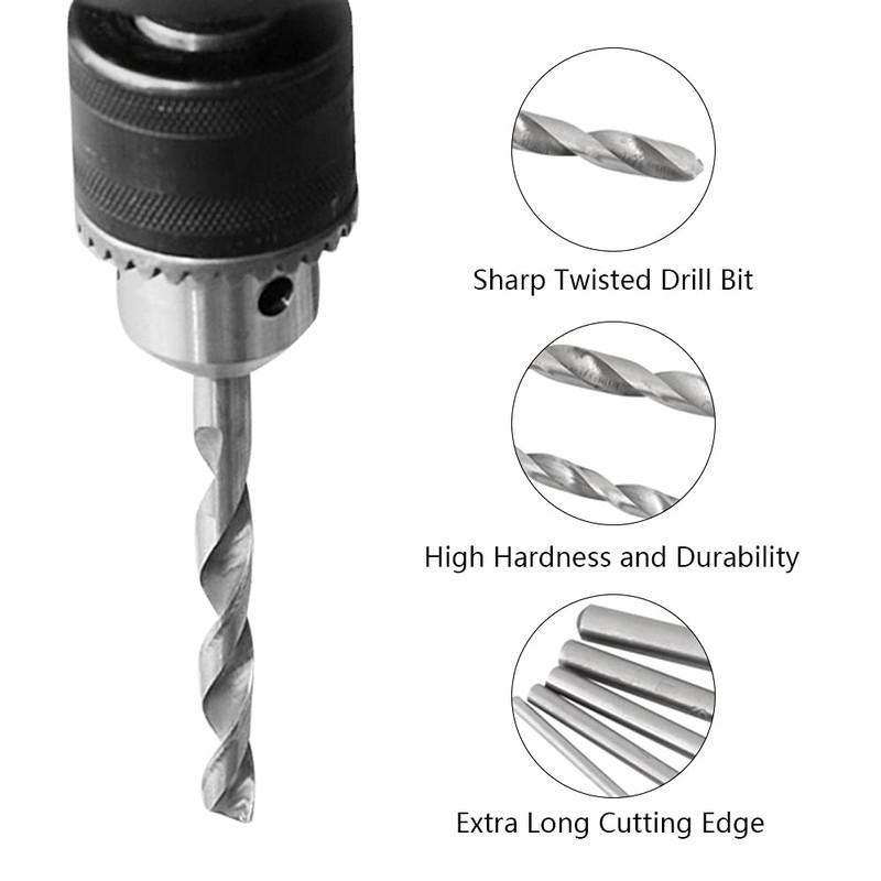 Twist drill bits are made from high-speed steel for high hardness and durability. This set includes 5 pieces drill bit in different sizes of the most popular drill bits. Extra long cutting allows you using these bits to drill deep holes.