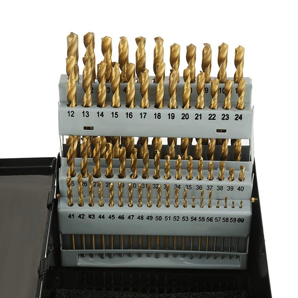 - 【Easy to Use】: 1 - 60 Piece Titanium Nitride Coated Drill Bit Set. Sharp twisted drill bits will make the drilling easier and more effortless