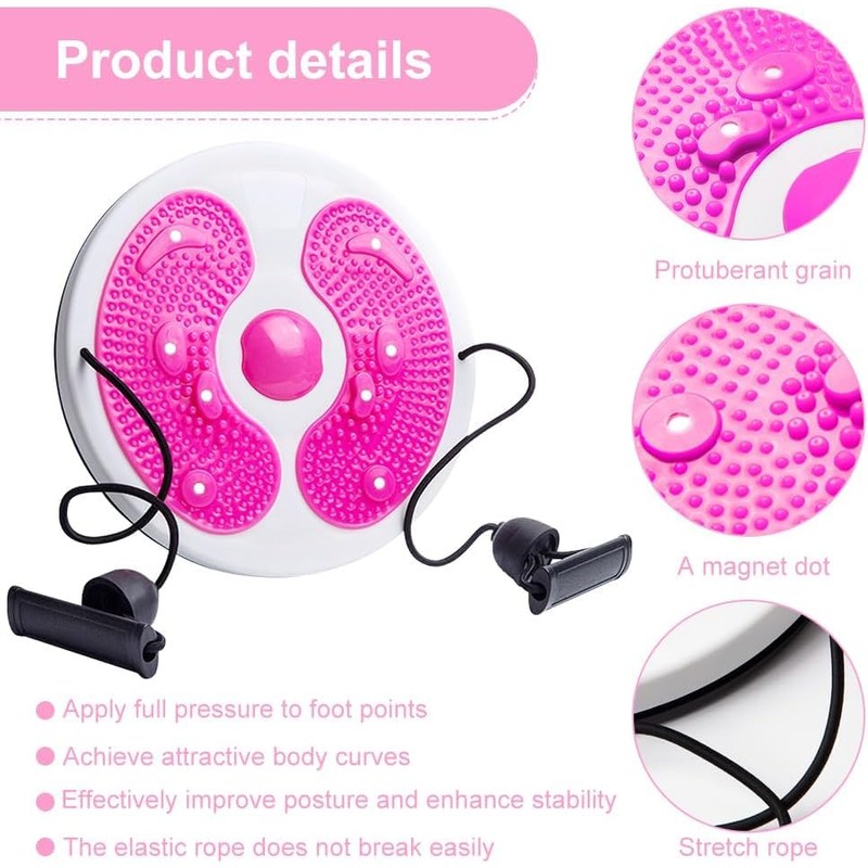 Twist Waist Disc Balance Board with Drawstring - Body Shaping Waist Twisting Disc - Fitness Turntable for Home Workout, Waist Wriggling Plate with Resistance Bands and Foot Massage(Pink)