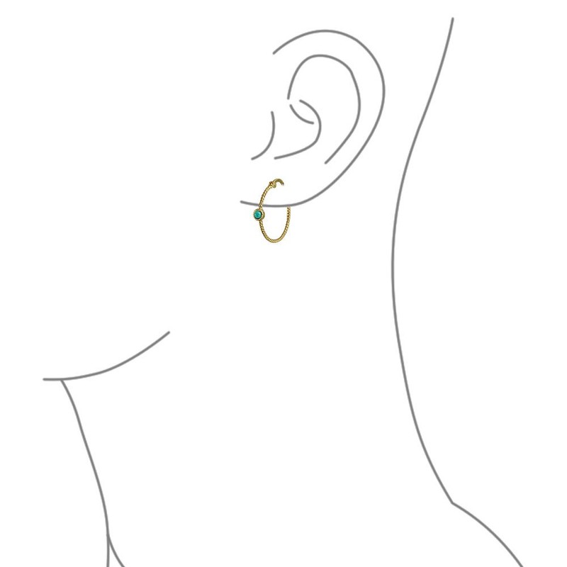 - Stunning gold plated silver earrings with a tiny round bezel set turquoise stone on a twisted cable sterling silver hoop for a unique and elegant look. Lightweight design ensures all-day comfort without sore ears. Perfect for December birthdays or anyone who loves turquoise gemstones