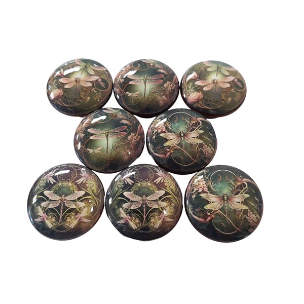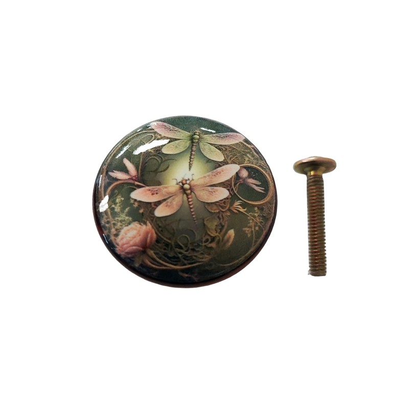 Twisted R Design Cabinet Knobs, Knobs for Kitchen Cabinets and Drawers, 1.5" Round Dresser Knobs (Set of 8 Dragonfly Wood Knobs) (Pink and Green Dragonfly)
