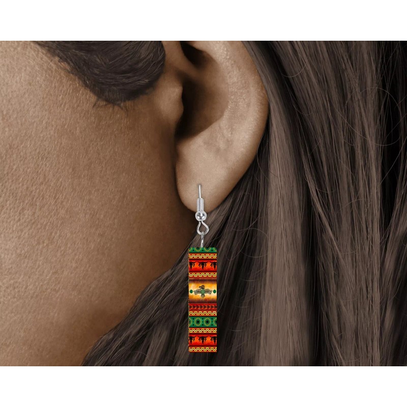Twisted R Design Earrings Aztec Thunderbird Printed Wood Bar Printed Earrings Jewelry