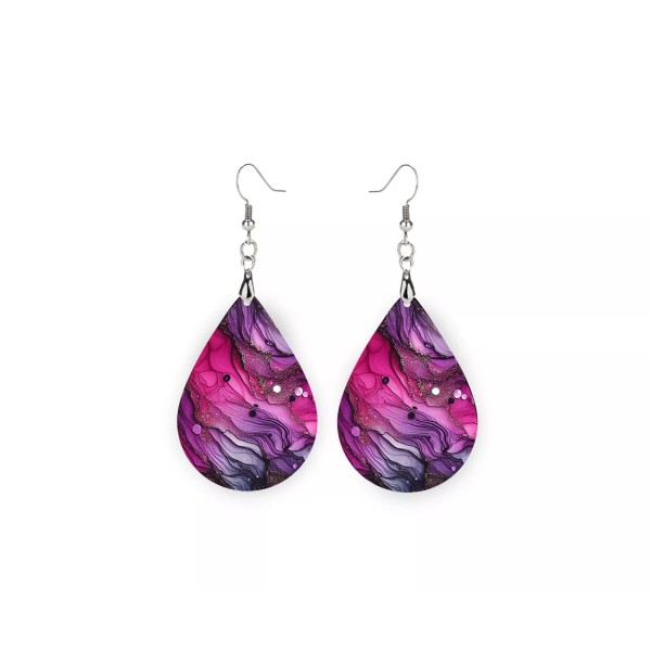 Twisted R Design Magenta and Purple Ink Wood Dangle Teardrop Print Earrings Jewelry