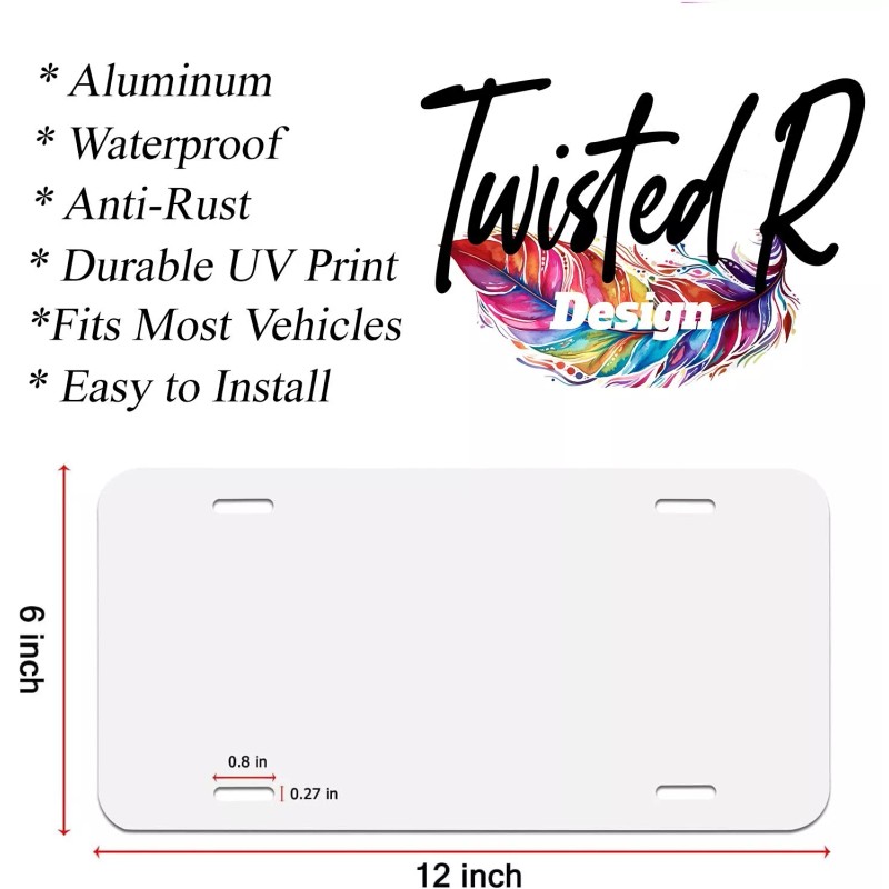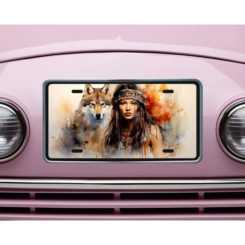 Twisted R Design Native American Girl and Wolf Aluminum Front License Plate Car Accessory Vanity