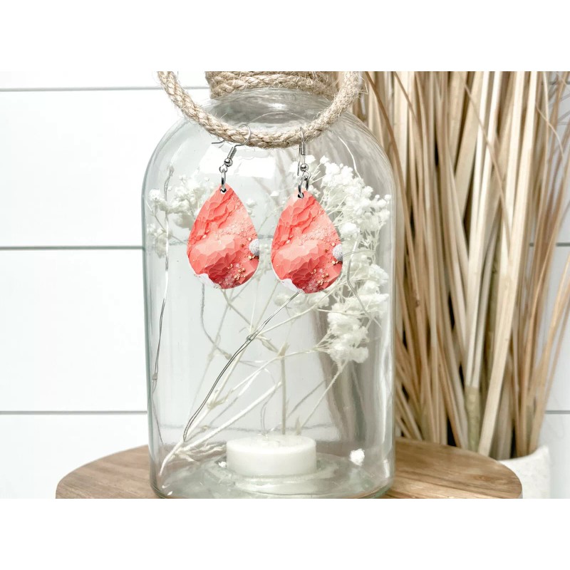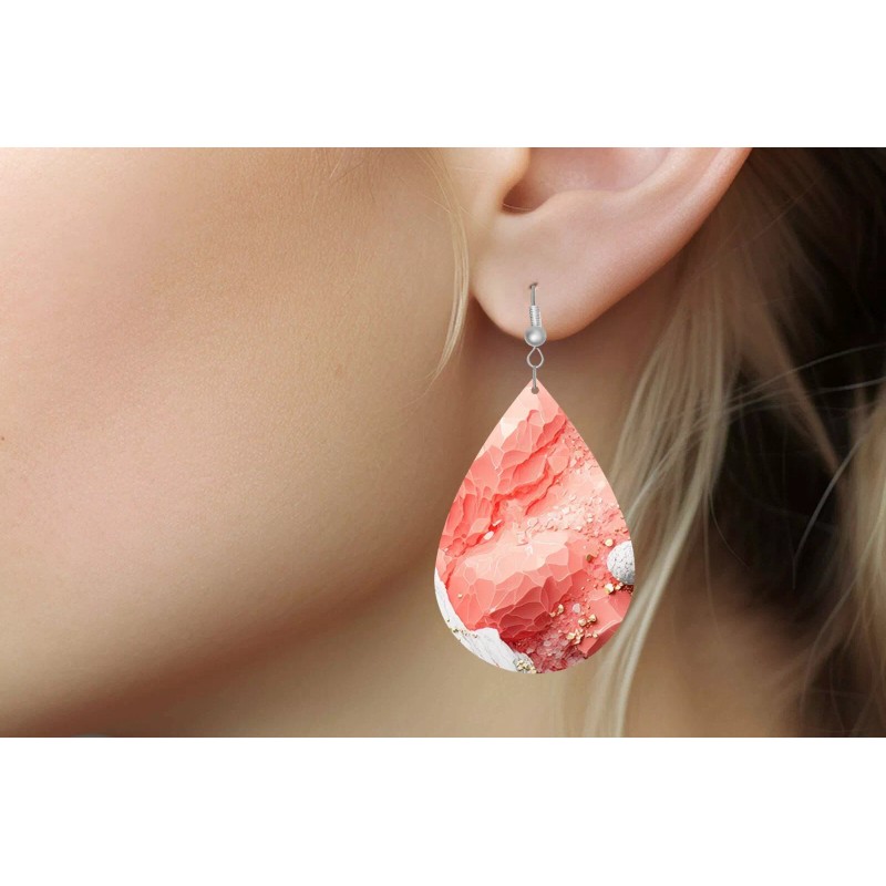 Twisted R Design Peach Agate Wood Dangle Teardrop Print Earrings Jewelry