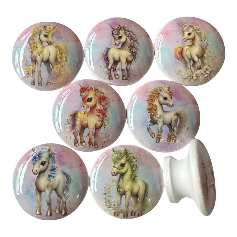 Twisted R Design Unicorn Cabinet Knobs for Kitchen Cabinets and Drawers, Matching Cabinet Knobs and Pulls, 1.5" Round Dresser Knobs (Set of 8 Unicorn Fantasy)