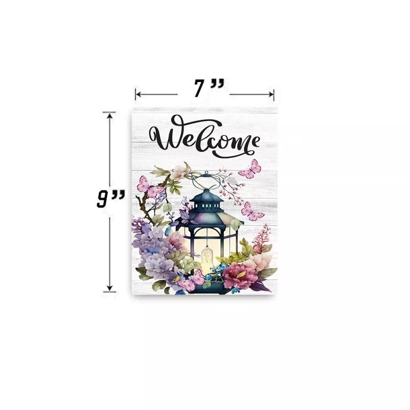 Twisted R Design Welcome Floral Lantern Farmhouse Floral Printed Handmade Wood Sign