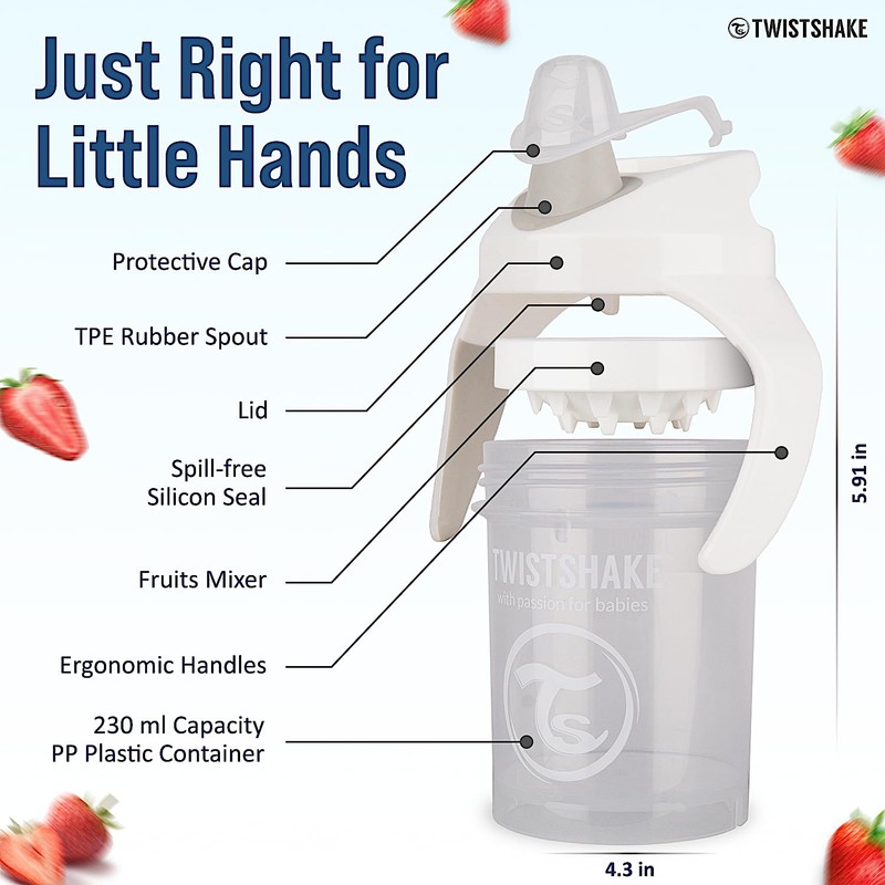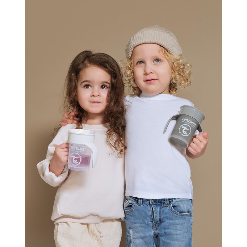 Twistshake 360 Cup + Mini Cup | Baby Sippy Cups with 360° Drinking Rim and Soft Drinking Spout with Fruit Mixer - 230 ml | Learning Cups for Children with Handles | Leak-Proof | BPA Free | White