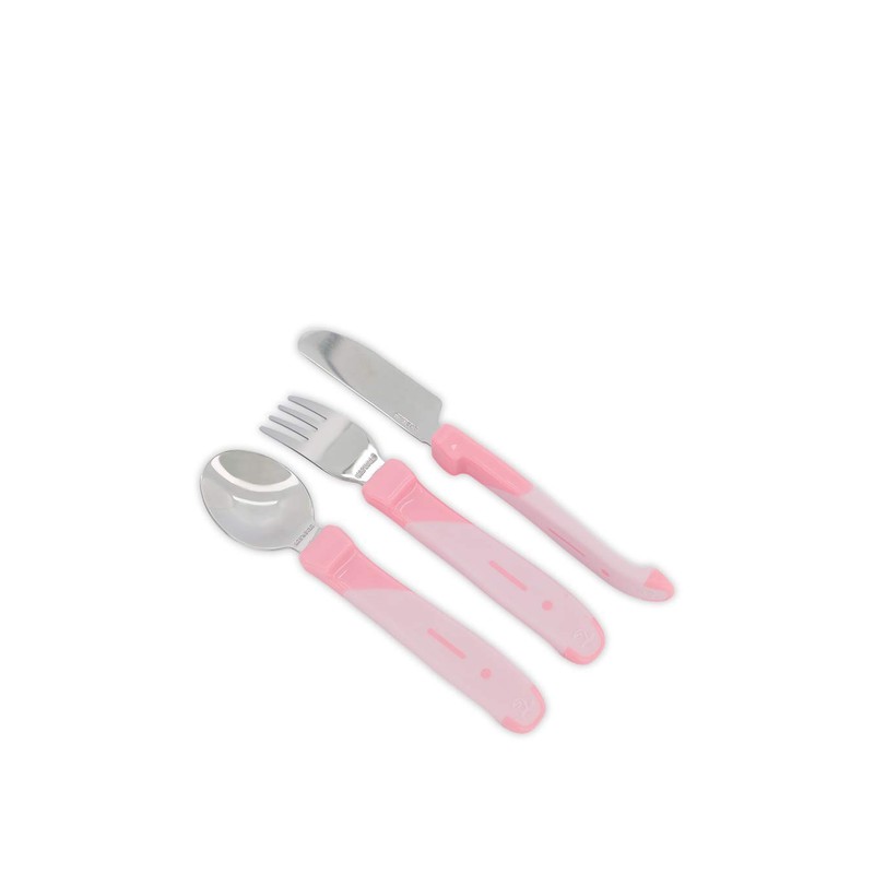 Twistshake Learn Cutlery - Cubiertos de acero inoxidable, 12 m y color rosa pastel