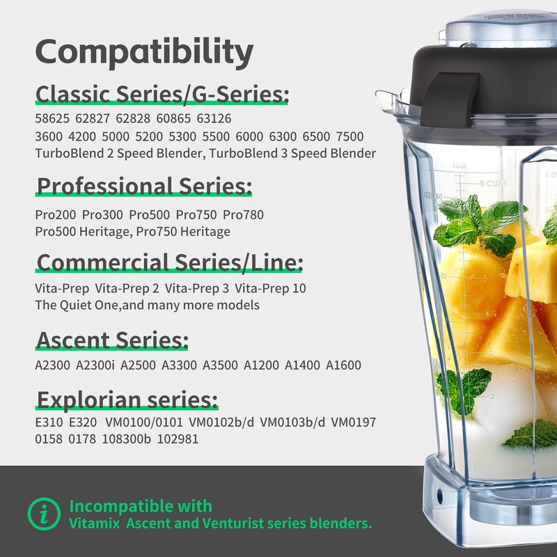 - Compatible with Vitamix 5200, 7500, E310, Classic & Explorian Series blenders.