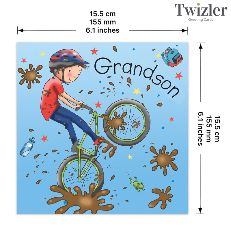 Twizler Happy Birthday Card For Grandson with Mountain Bike – Grandson Birthday Card – Childrens Birthday Card – Boys Birthday Card – Birthday Card For Grandson - Grandson Gifts