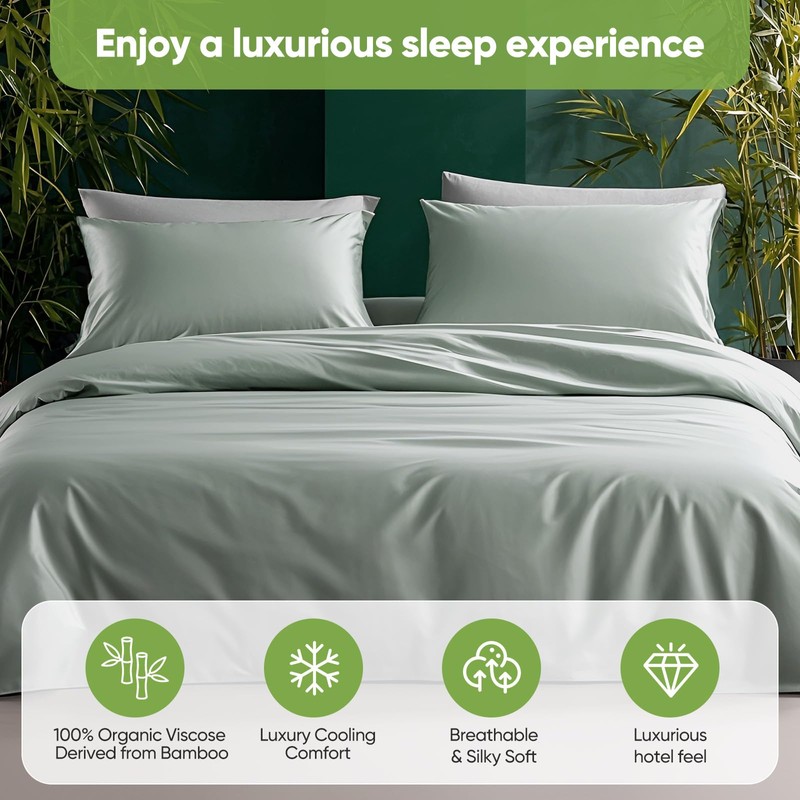 - 【Cooling softness, Breathable Comfort】100% Orgnaic Viscose derived from bamboo is naturally thermo-regulating to keep you cool and relaxed while sleeping and providing all season comfort. The moisture-wicking properties of our resort-grade bedding is perfect for hot sleepers or those with sensitive skin while indulging in the ultimate luxurious softness.