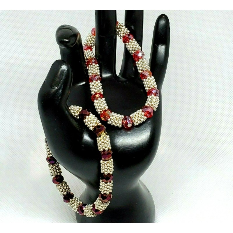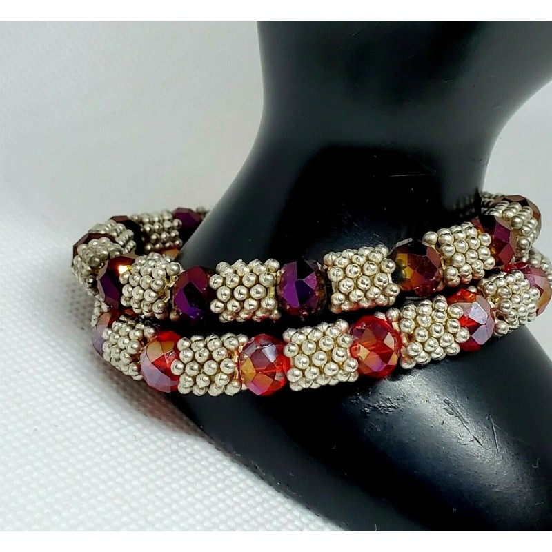 - Pink And Purple Aurora Borealis And Silver Tone Beaded Stretch Bracelets