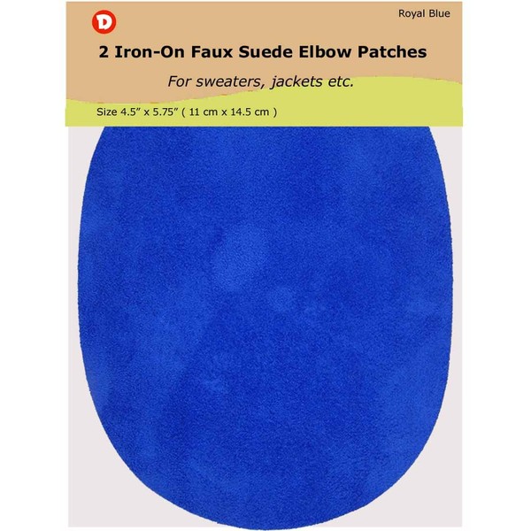 -2 Iron-on Faux Microfiber Suede - Elbow Patches Size 4 1/2 in x 5 3/4 in (Microfiber Royal Blue)