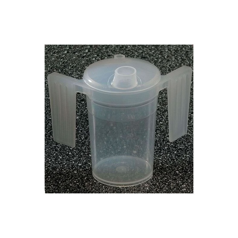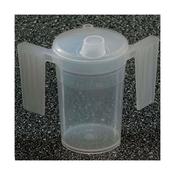 Two Handled Plastic Feeding Cup with SPOUT Adult Feeder Beaker Disability Drinking AIDS - Pack of 1 - Wide spout