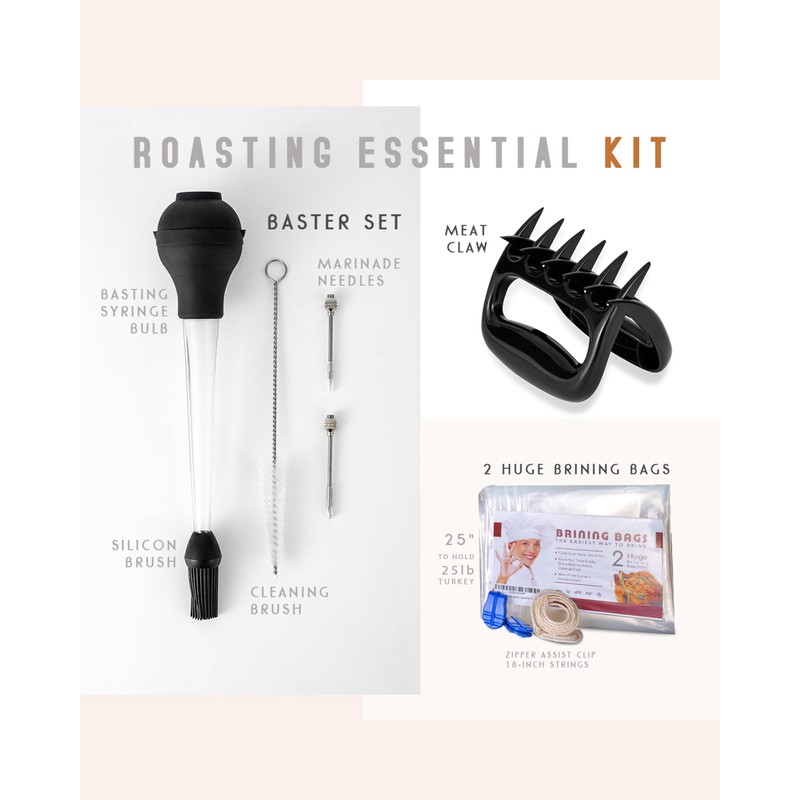 - Ultimate Turkey Roaster Kit: Includes a brining bag to enhance flavor and moisture, a baster to help maintain juiciness by cooling the surface, and a meat claw for easy shredding. This kit is designed to make your next Turkey Day both delicious and enjoyable.