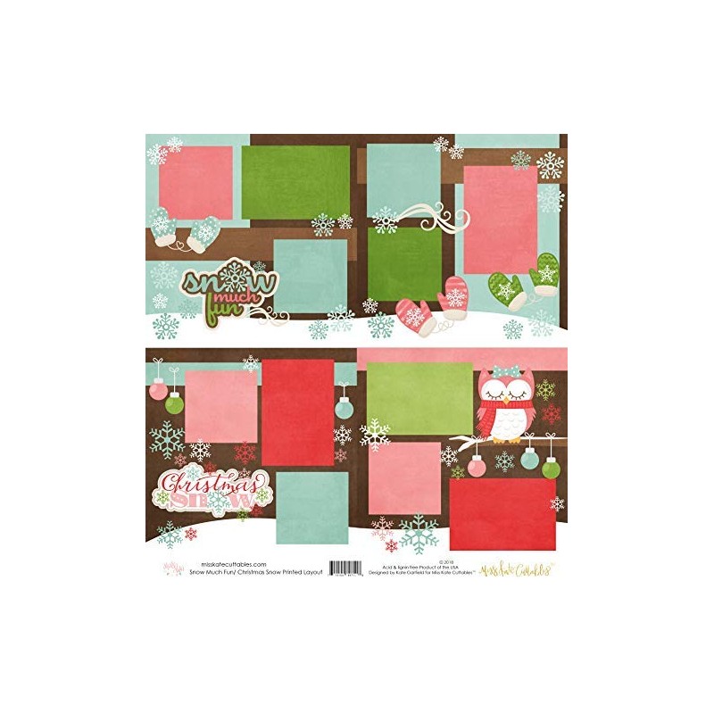 Two Printed Layouts - Snow Much Fun & Christmas Snow - 2-2 Page 12"x12" & 2 Duplicate 6"x6" Bonus Layouts on 80lb Cardstock - Exclusive Original Matching KIT - by Miss Kate Cuttables