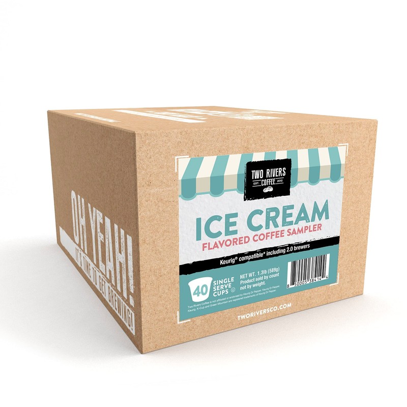 Two Rivers Coffee Ice Cream Flavored Coffee Pods, Variety Sampler Pack for Keurig 2.0 K Cup Brewers, 40 Count