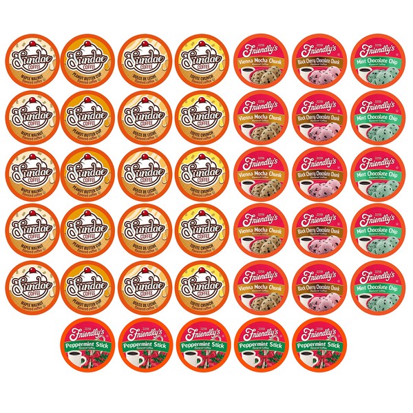 - Contains ice cream inspired flavored coffees from sundae coffee and Friendly's
